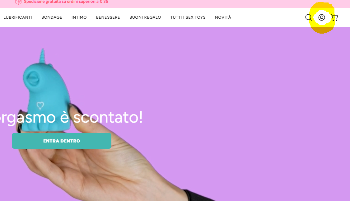 Se hai ricevuto un credito e vuoi usarlo sul tuo ordine, la prima cosa che devi fare è entrare sul tuo profilo sul nostro sito cliccando sull'icona in alto a destra: